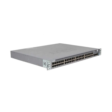Juniperr EX3400-48P เดิมใช้ 48 พอร์ต Gigabit อีเธอร์เน็ตสวิตช์เครือข่าย 48x1/10G SFP + 2x AC PSU 128G VC